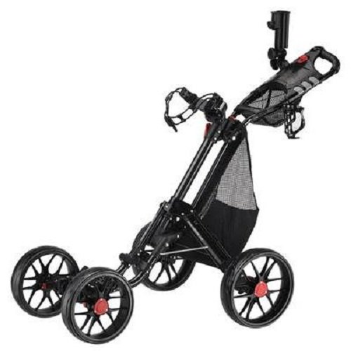 Black CaddyCruiser ONE V2 One-Click Folding 4 Wheel Golf Push Cart