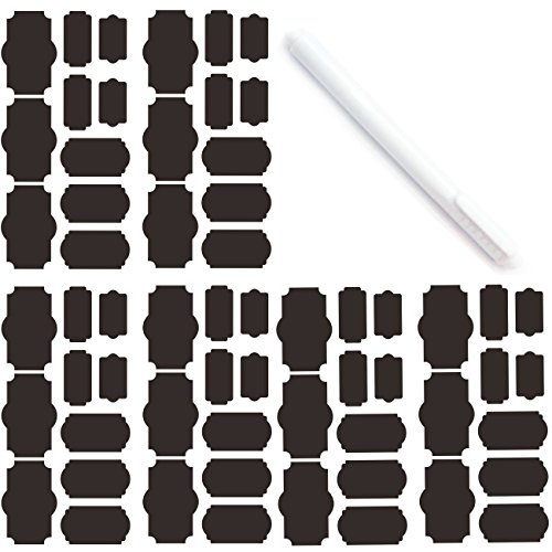 Vbeauty 60 Reusable Chalkboard Labels with Liquid Chalk Marker-4 Sizes Rectangles Chalkboard Stickers Packaged