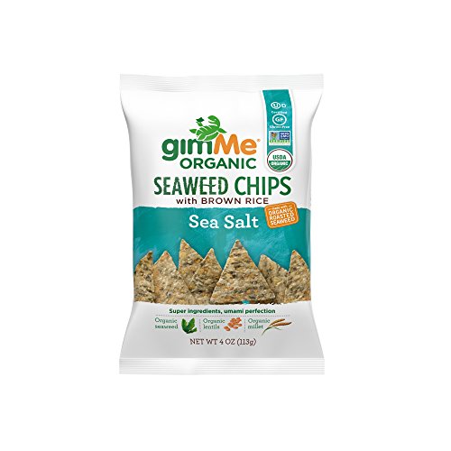 gimMe Snacks Organic Seaweed Rice Chips, Sea Salt, 113 gram, 12 Count