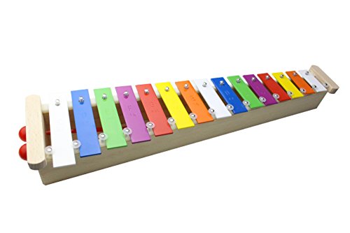 ProKussion 15 Key Soprano Glockenspiel with Wooden Resonating Chamber and Removable Keys (6 Extra Keys and 4 Beaters)