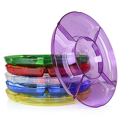 (Set of 6) Plastic 5 Section Divided Serving Tray/Compartment Party Appetizer Platter