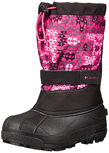 Columbia Youth Powderbug Plus Print Winter Boot (Little Kid/Big Kid), Black/Bright Rose, 2 M US Little Kid