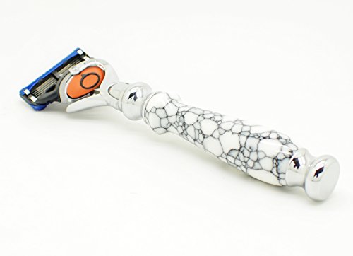 Orchid Isle~Fusion Flexball Proglide Shaving Razor FLEX 2~USA Handmade with~White Web Turquoise *True-Stone Composite Stone #480