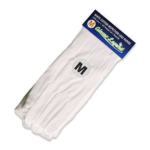 Size Medium - 6 Pairs (12 Gloves) Gloves Legend White Coin Jewelry Silver Inspection Cotton Lisle Moisturizing Gloves - Medium Weight