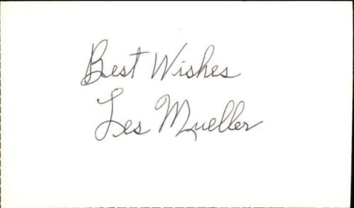 LES MUELLER BASEBALL SIGNED INDEX CARD 3X5 BEST WISHES ID #24329