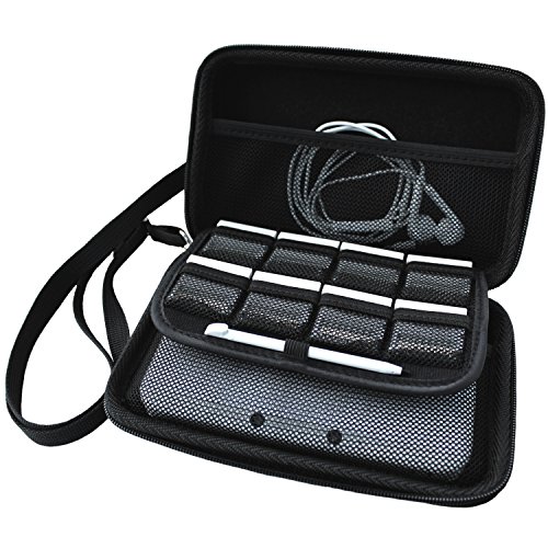 Technoskin - Compact Travel Carrying Case for NEW 3DS or NEW 3DS XL - Black - 8 Game Holders - Hard Cover - Mesh Accessory Pouch - Carrying Strap - Lifetime Guarantee