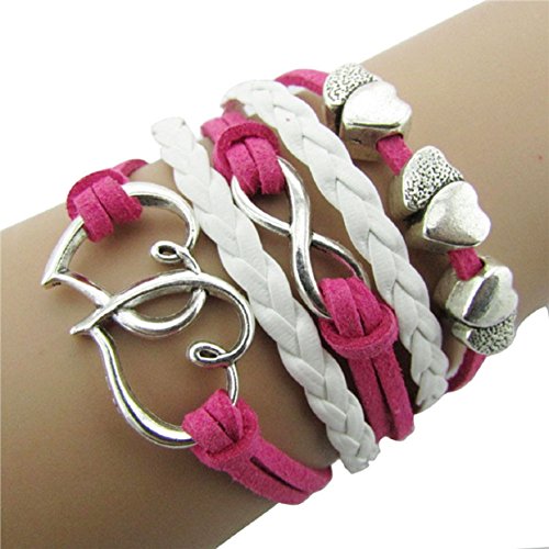Mokingtop Hot Pink Infinity Double Love Friendship Leather Alloy Charm Bracelet