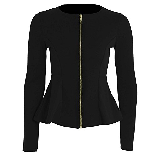 Forever Womens Long Sleeves Plain Zip Peplum Blazer Jacket Top