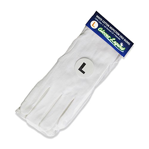 Size Large - 6 Pairs (12 Gloves) Gloves Legend White Coin Moisturizing Jewelry Silver Inspection Cotton Lisle Gloves - Medium Weight