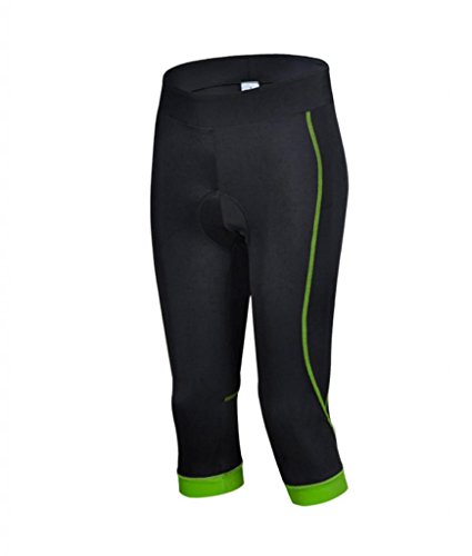 Showtime Women's Active Padded Cycling 3/4 Tights Capris Pant - Spring Autumn Running or Jogging Classic Simple Green Edge and Line among Black