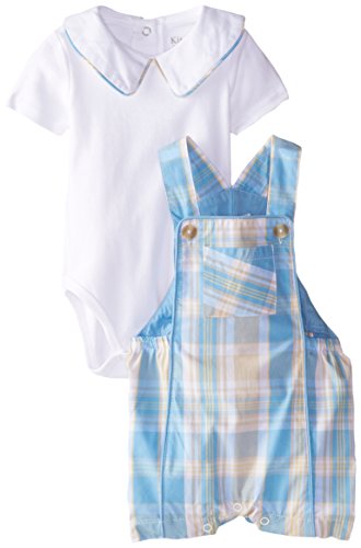 Kitestrings Baby Boys' Newborn Cotton Plaid Shortall with Interlock Bodysuit Set, Blue, 0-3 Months