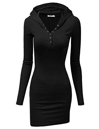 Doublju Womens Long Sleeve Henley Neck Basic Hoodie Dress Black 2XL
