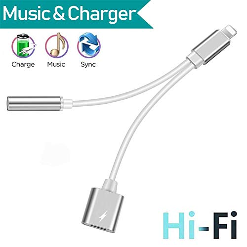 Lightnįng to 3.5 mm Headphone Jack Adapter Charger for iPhone Dongle 2 in 1 Converter Splitter Cable Aux Audio Adaptor to Compatible with iPhone 7/8/7 Plus/8 Plus/X/XS/XR Support for iOS 12 or Later