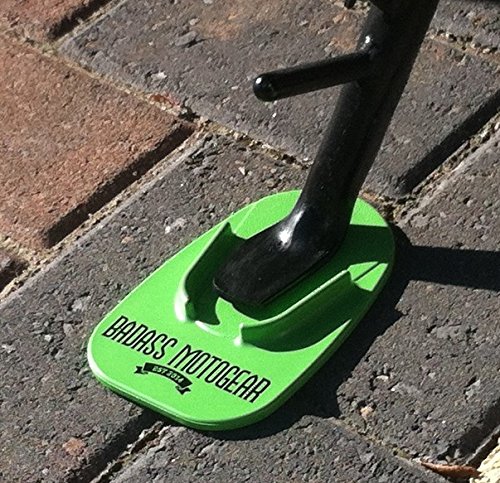 Badass Moto Gear Motorcycle Kickstand Pad - Green - American Made in USA. Durable Biker Kick Stand Coaster/Support Plate Color Choices. Rest or Park Your Bike on Hot Pavement, Grass, Soft Ground