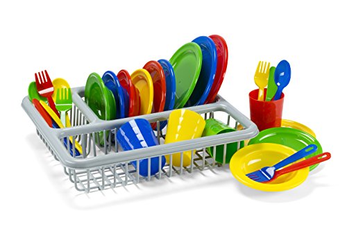 Kidzlane Durable Kids Play Dishes - Pretend Play Childrens Dish Set - 29 Piece with Drainer
