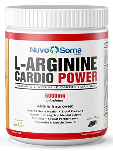 NuvoSoma Labs L-Arginine 5000mg Cardio Power Dietary Supplement includes Nitric Oxide, L-citrulline, CoQ10 and Resveratrol