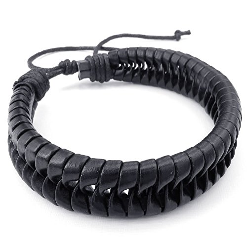 KONOV Mens Leather Bracelet, 7-9 inch Adjustable Braided Cuff Bangle, Black