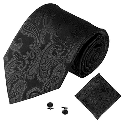 New Pulm Paisley Jacquard Woven Men's Tie Necktie (Black)