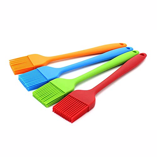 WARMBUY Set of 4 Silicone Pastry Basting Grill Barbecue Brush, Solid Core and Hygienic Solid Coating, Red, Blue, Orange, Green, 8-3/4 Inch Long