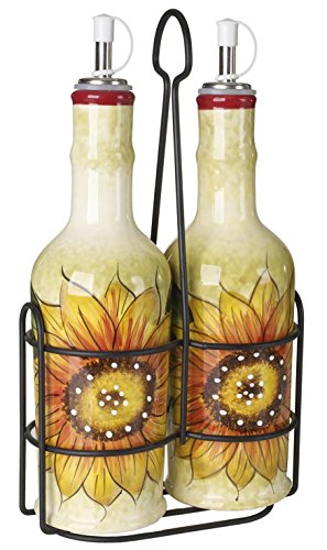 Original Cucina Italiana Ceramic Olive Oil, Vinegar 14 Oz. Dispenser Bottle 3 Piece Set