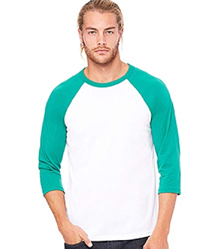Bella 3200 Unisex 3 By 4 Sleeve Baseball Tee - White & Kelly, Medium