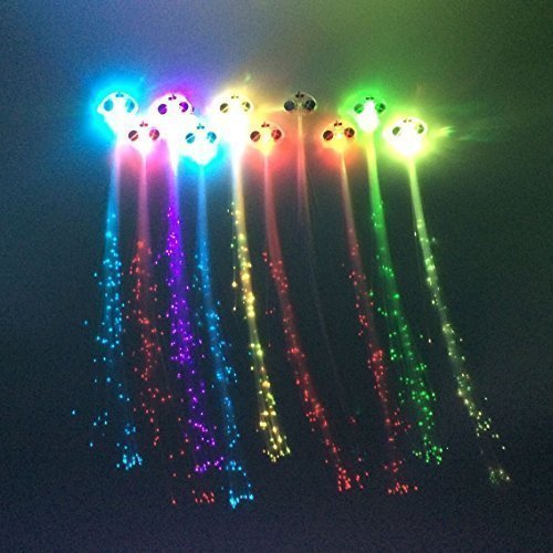 Z ZICOME 10 Pack Light Up Fiber Optic Led Hair Lights - Multicolor Flashing Barettes - Party Supplies