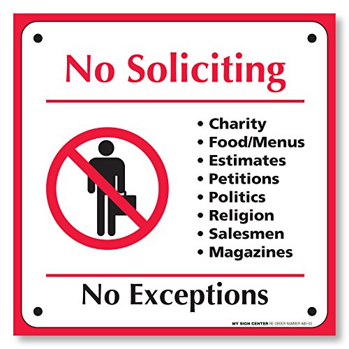(4 Pack) No Soliciting No Exceptions Self Adhesive Sticker - Do Not Disturb Decal - 6" X 6" - 4 Mil Premium Vinyl - Indoor and Outdoor Use - A85-03