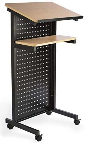 Displays2go Mobile Portable Presentation Lectern, Locking Wheels, with Shelf, Steel and MDF Wood (LCTMOBMETM)
