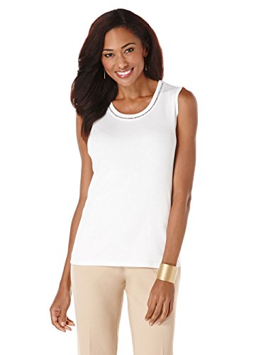 Rafaella Women's Petite Solid 1X1 Tank with Faggoting, White, Medium