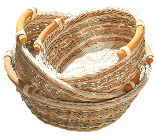 ShopOnNet RT450120-3 Handwoven Round Wicker Storage Basket Curve Pole Handle in Gray and Brown (Set of 3)