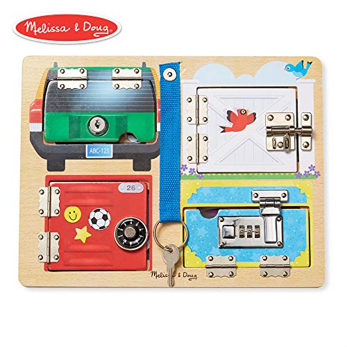 Melissa & Doug Locks & Latches Board Wooden Educational Toy (Sturdy Wooden Construction, Helps Develop Fine-Motor Skills)