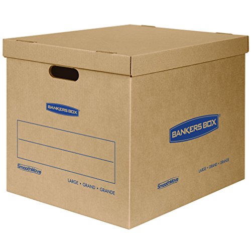 Bankers Box SmoothMove Classic Moving Boxes, Tape-Free Assembly, Easy Carry Handles, Large, 21 x 17 x 17 Inches, 5 Pack (7718201)