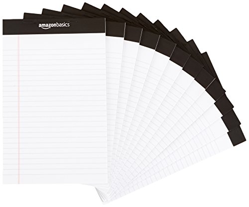 AmazonBasics Narrow Ruled 5 x 8-Inch Writing Pad - White (50 Sheet Paper Pads, 12 pack)