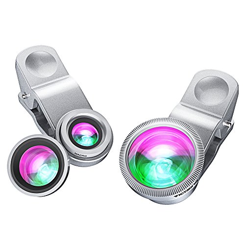 VicTsing 3-in-1 Clip 180 Degree Fisheye Lens Plus Wide Angle Lens Plus Macro Lens,Camera Lens Kits for iPhone 6s, 6, 5s, 5 with Flat Camera - Silver
