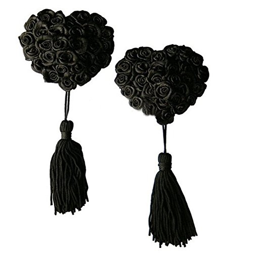 Ayliss 2pcs Rose Heart Shape Nipple Covers Tassel Pasties Breast Bra Stickers