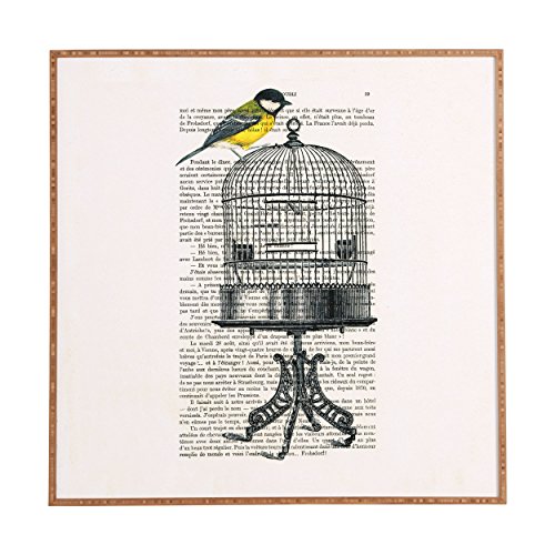 Deny Designs Coco De Paris, Bird On Birdcage, Framed Wall Art, Medium, 20" x 20"