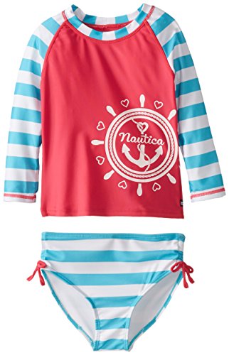 Nautica Girls' Logo Stripe Rashguard Two-Piece Swim Set