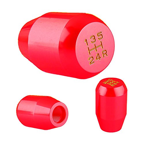 Seteda New 5 Speed Manual Universal Gear Shifter Shift Stick Knob JDM Red Aluminum Nob Racing Replace W/3 Adapter