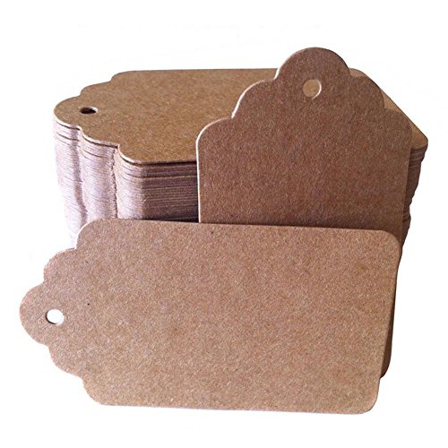 Christmas Gift Tags 50pcs Brown Kraft Paper Hang Tags Labels with Free Cut Strings for Gifts, Crafts & Price Tags for Wine, Decor, Weddings (Scallop)