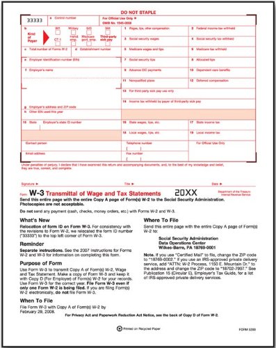 IRS Approved - W-3 Tax Summary Form - 25 Pack