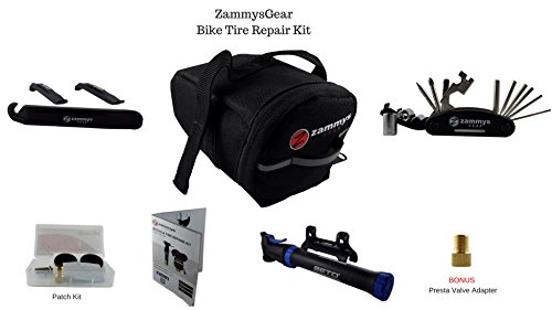 ZammysGear Best Bicycle Flat Tire Repair Kit for Bicycle and Bike. Bike Tire Pump, Patch Tool Kit in Bicycle Accessories Saddle Bags