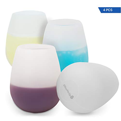 Stemless Silicone Wine Glasses, Unbreakable Outdoor Cups, Shatterproof Rubber, Set of 4