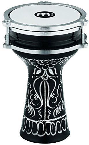 Meinl Percussion MIni Darbuka with Hand Engraved Shell - MADE IN TURKEY - 4 1/4" Tunable Synthetic Head, 2-YEAR WARRANTY, Aluminum, Black, 4 1/2" Wide x 7 3/4" (HE-052)