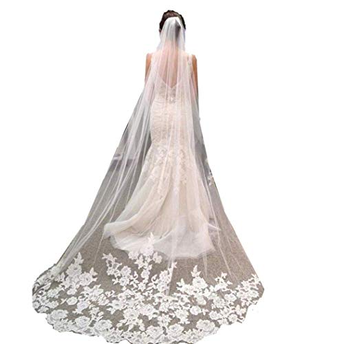 New Elegant 1T White Ivory Lace Edge Cathedral Length Wedding Bridal Veil+Comb