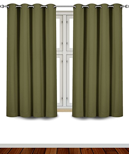 Utopia Bedding Grommet Top Thermal Insulated Blackout Curtains, 2 Panels, 52 x 63 Inch, Olive