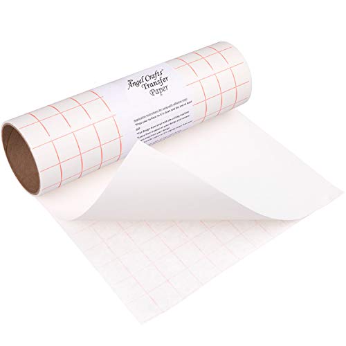 Angel Crafts Transfer Paper Tape: Craft Transfer Tape for Vinyl Application with Red Grid Lines - Self Adhesive Transfer Paper Roll Compatible with Cricut, Silhouette Cameo - 12 Inch by 8 Feet, White