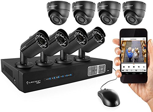 Amcrest ProHD 1080P 8CH Video Security System - Eight 2.1-Megapixel (1920TVL) Outdoor IP67 Bullet & Dome Cameras, 2TB HDD, Night Vision, Remote Smartphone Access, Black Mid (AMDV10808-4B4D-B)