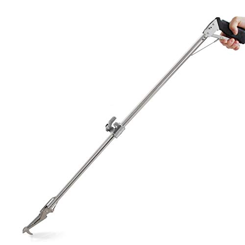 Fnova Upgraded 47 Inch Professional Collapsible Snake Tongs Reptile Catcher Stick Rattlesnake Grabber Pick-up Handling Tool, with Zigzag Wide Jaw, Stainless Steel (Silver)
