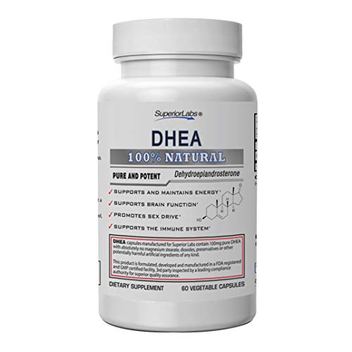Superior Labs – Extra Strength Natural DHEA – Non-GMO 100 mg Dose, 60 Vegetable Capsules – Promotes Healthy Aging in Men & Women – Helps Restores Youthful Energy Levels