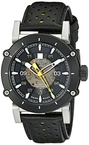 Zodiac Men's ZO8571 ZMX-2 Stainless Steel Watch with Black and Yellow Genuine Leather Band